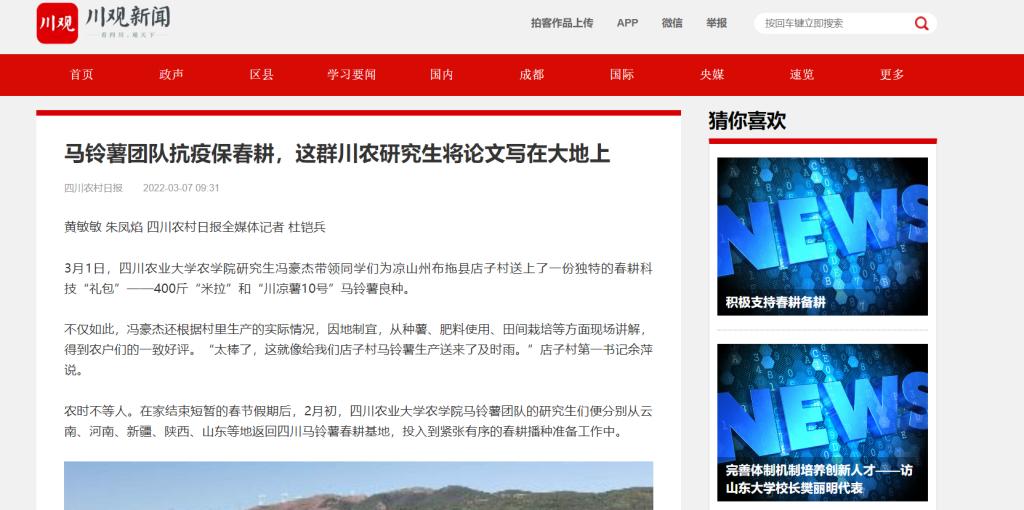 在雷波县,早在1月,团队师生从36365线路检测中心no1赴雷波开展定点帮扶工作团队了解到当地有马铃薯种薯、生产技术等科技服务的需求后,立即与学校派驻雷波县大杉坪村的驻村干部祖立义老师联系展开帮扶。就在春播前,大杉坪村急需的马铃薯脱毒良种“川凉薯10号”“米拉”“云薯108”和“布拖乌洋芋”送到了农户手中,确保了该村今年的马铃薯新品种引种示范启动。