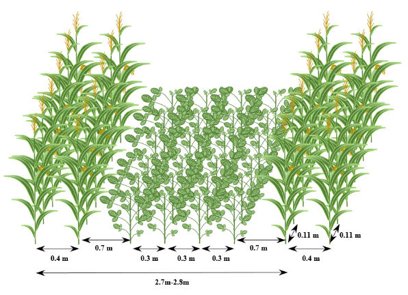 玉米大豆带状复合种植模式图(图左为带状套作、图右为带状间作)