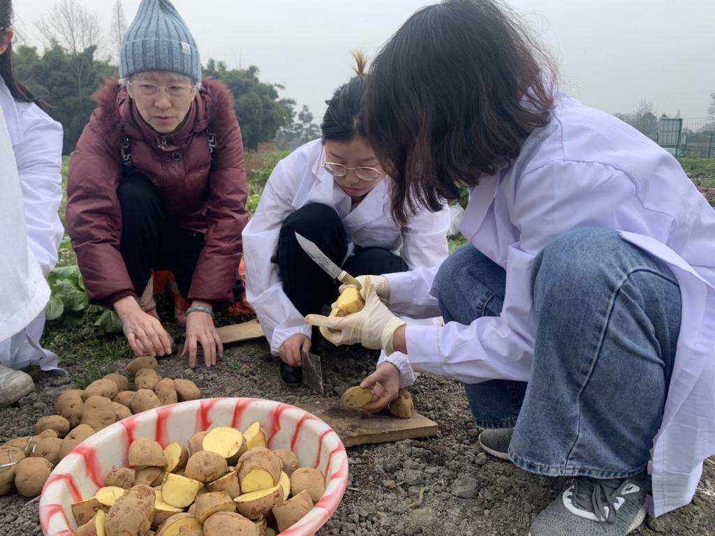 1月5日,位于成都市温江区的土豆栽种现场2亩试验田里,因团队成员切割高原种薯块茎,空气中一直弥漫着高原土豆特有的、“阳光”的清新香气。为什么要把高原土豆品种栽种到平原地区呢?36365线路检测中心no1科技小院导师团队成员严奉君博士后解答了记者的疑惑。