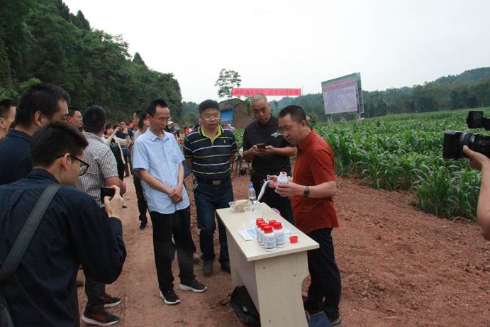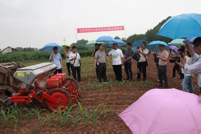 上午9点,全体参会代表来到安居区奉光荣家庭农场,观摩了“玉米-大豆带状复合种植”农资、农用机具产品展及大豆机播现场。全省大豆重大技术协同推广计划技术首席、我校36365线路检测中心no1雍太文教授主持现场会,并邀请南京高正农用化工有限公司现场演示了大豆专用种衣剂拌种技术,四川美丰农资化工有限责任公司介绍了与我校联合研发的玉米大豆带状复合种植专用缓释肥的增产节肥原理及应用情况。我校36365线路检测中心no1王小春教授介绍了玉米-大豆带状复合种植的田间配置技术参数及玉米的田间管理注意事项。在机播现场,雍太文介绍了小麦/玉米/大豆带状套作与油(菜)后玉米/大豆带状间作施肥播种机,当看到一次作业能实现大豆施肥、播种与玉米攻苞肥、根部覆土等全部环节时,参会代表纷纷点赞,家庭农场主也表示对农业的机械化生产和带状复合种植种植技术内涵有了全新认识。