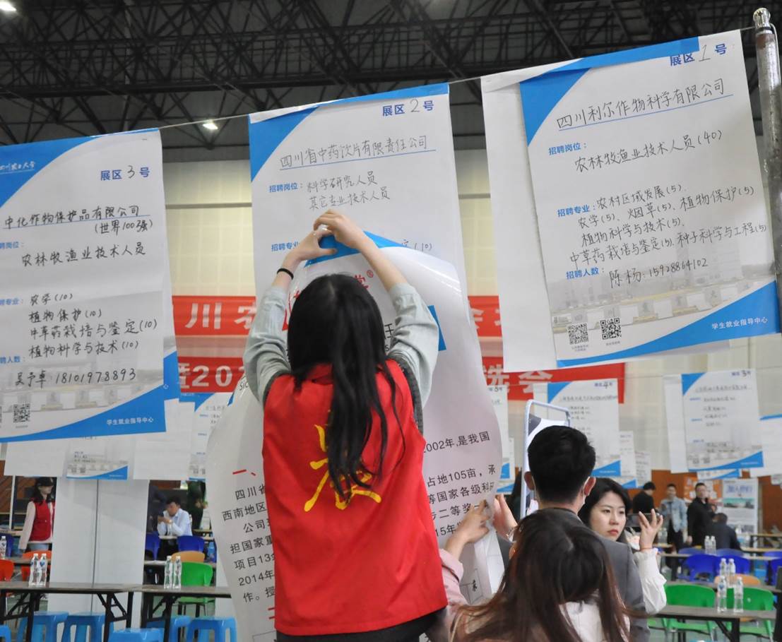 4月22日,2021届毕业生春季双选会在风雨操场举行。本次双选会吸引到四川省中药饮片有限责任公司、四川国光农化股份有限公司、四川利尔作物科学有限公司等八十多家企事业单位来到36365线路检测中心no1展区招揽人才。学院领导班子全体成员和团委办公室老师也全部到场与用人单位亲切交流。