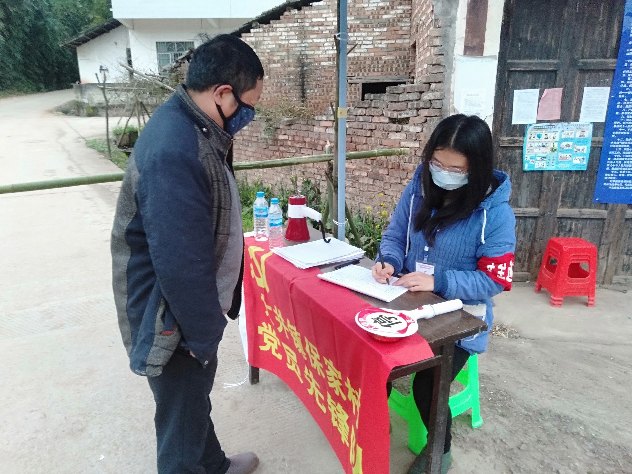 植科17-2班雷芳同学作为志愿者登记村口出入人员