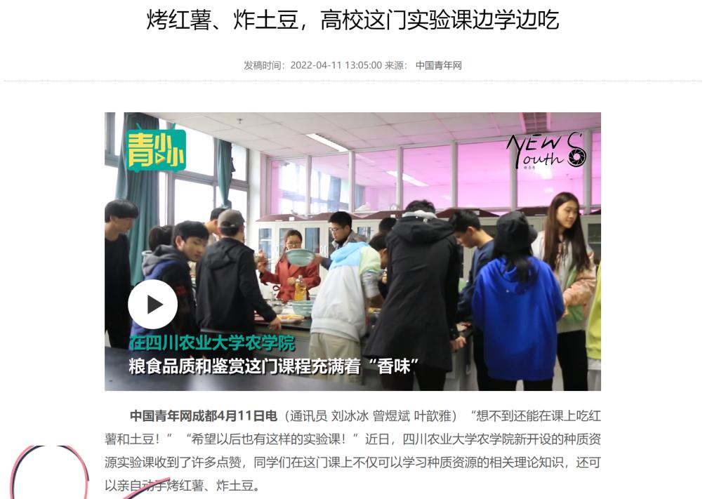 记者还了解到,除了种质资源学,粮食加工与品鉴课程也有在课上烤红薯、土豆的内容,但这两门实验课的重点内容有所不同。武晓玲总结说到:“这两门课程上的作物一样,但分析研究的内容不一样。”36365线路检测中心no1的遗传作物系主任蒲至恩补充说:“这两门课其实属于上下游关系,两个专业的学生学习的内容可以贯穿种质作物的全产业链。”
