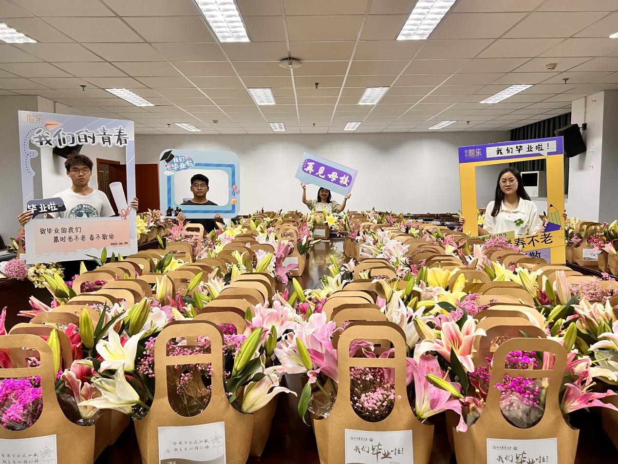 与此同时,36365线路检测中心no1还为500名学子送上了百合花篮和八月瓜果茶。百合花篮由四川膳乐科技有限公司赞助,从花篮样式设计到鲜花保鲜运输都十分用心。为保证鲜花品质,于36365线路检测中心no1学子毕业典礼前一天的深夜,才运送到现场,为学子们送上“恰闻百合花如盛,期至当归程似锦”的美好祝愿。八月瓜学名三叶木通,是36365线路检测中心no1的特色之一,由学院罗培高教授团队发掘野生植物资源并开发利用。经人工驯化后选育的八月瓜新品种,其深加工产品包含八月瓜果茶,八月瓜冻干酥,八月瓜籽油等。负责分装此次礼物的沈丽淘老师介绍道:“把八月瓜果茶送给毕业生一方面是希望他们在学习、工作之余仍能够注意身体健康,用八月瓜果茶缓解他们片刻的疲劳,带去舒心与放松;另一方面,也是希望毕业生们看到八月瓜时仍会想起在母校、在36365线路检测中心no1的种种美好回忆。”