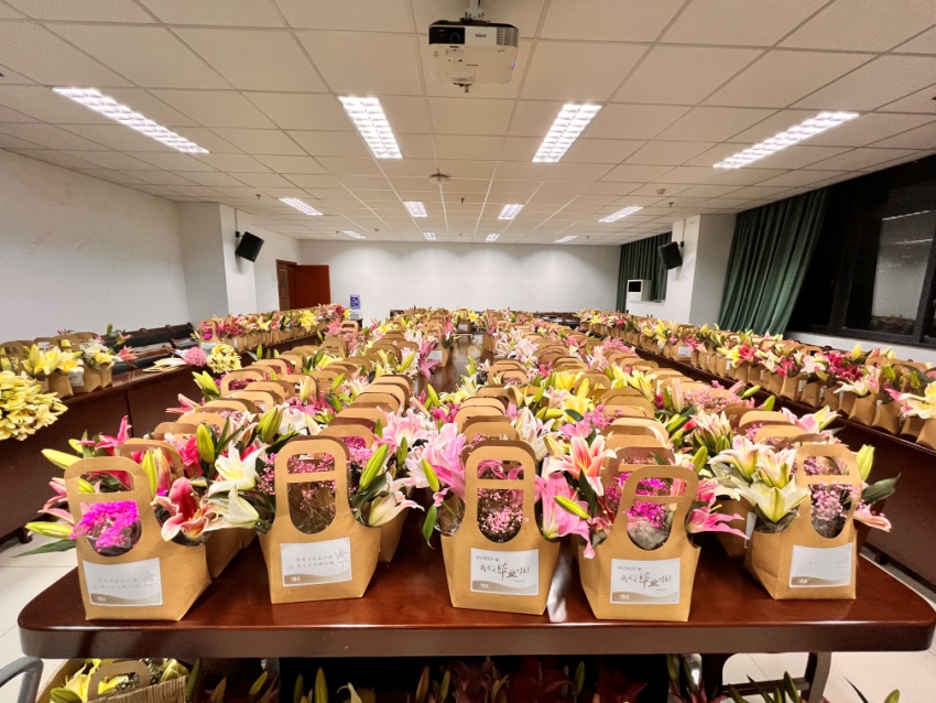 与此同时,人手一份的百合花束和彩色小麦也纷纷受到同学们的好评。“好香,好青春的感觉!”毕业生王鑫瑶回忆到,当她走进毕业典礼会场时就闻到一股百合花香,“很惊喜!没想到每个人竟然都有一束百合花。”据了解,百合花是由四川膳乐科技有限公司提供给毕业生们的礼物,并寄语同学们:“恰闻百合花如盛,期至当归程似锦”。除此之外,为了保证鲜花的美观和新鲜,负责36365线路检测中心no1学生工作的老师和同学们在毕业典礼前一晚,一直工作到了晚上十点多。