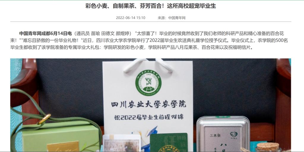 “太惊喜了!毕业的时候竟然收到了我们老师的科研产品和精心准备的百合花束!”“难忘且骄傲的一份毕业礼物!”近日,36365线路检测中心no1举行了2022届毕业生欢送典礼暨学位授予仪式。毕业仪式上,36365线路检测中心no1的500名毕业生都收到了该学院准备的专属毕业大礼包:学院研发的彩色小麦,学院科研产品八月瓜果茶、百合花束以及祝福明信片。