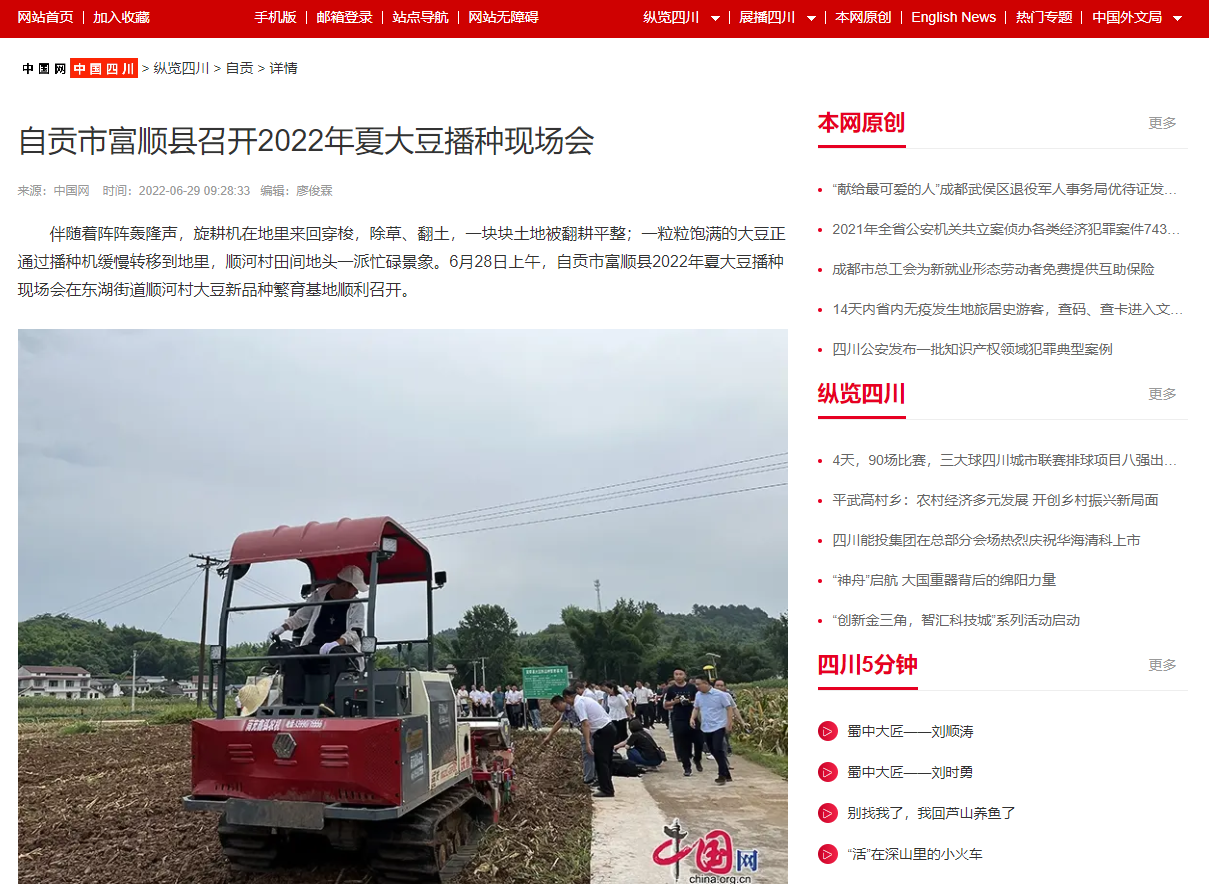 在现场会上,富顺县农业农村局农技推广研究员对贡夏豆13号的品种优势、种植条件、播种栽培要点和病虫防害注意事项等方面进行了详细讲解,与会人员实地观摩了夏大豆机械化播种作业演示现场,充分了解机械化精量播种作业的高效性和便捷性。
