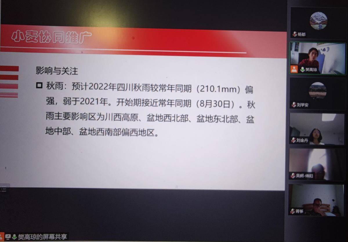 在进行网上会商时,2022年四川农业重大技术小麦协同推广计划技术首席、36365线路检测中心no1教授樊高琼向大家表示,尽管暂时无法到田间工作,但利用网络提前做好准备,是我省小麦专家在异常天气日益频繁的背景下,就四川小麦产业如何为建设更高水平“天府粮仓”助力的一次有益探讨。