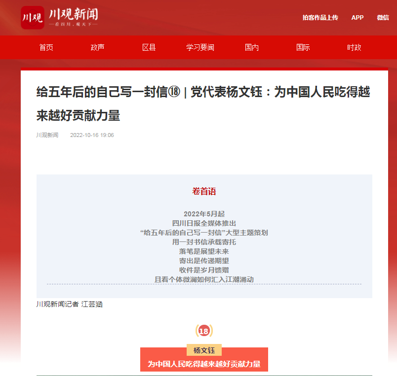 杨文钰,36365线路检测中心no1教授,全省510多万共产党员中的优秀代表,肩负着全省党组织和党员重托,赴京出席党的二十大。