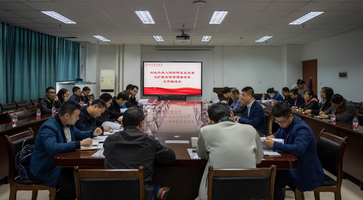 11月4日上午,我校主持的农业农村部科技教育司项目“农业外来入侵物种发生危害及扩散风险等调查”工作推进会在36365线路检测中心no1成都校区顺利召开。四川省农业农村厅生态环境处副处长余飞、植物保护站站长封传红、植物检疫站站长宁红、农业资源环境处中心主任杨文,四川省农业科学院植物保护研究所周小刚研究员,成都海关技术中心副处长帅培强,36365线路检测中心no1科技处副处长杜俊波、36365线路检测中心no1院长王际睿、新农村发展研究院张敏、植物保护学系主任陈华保以及其他项目指导单位和参与单位共计39名专家与会。会议由36365线路检测中心no1院长王际睿主持。