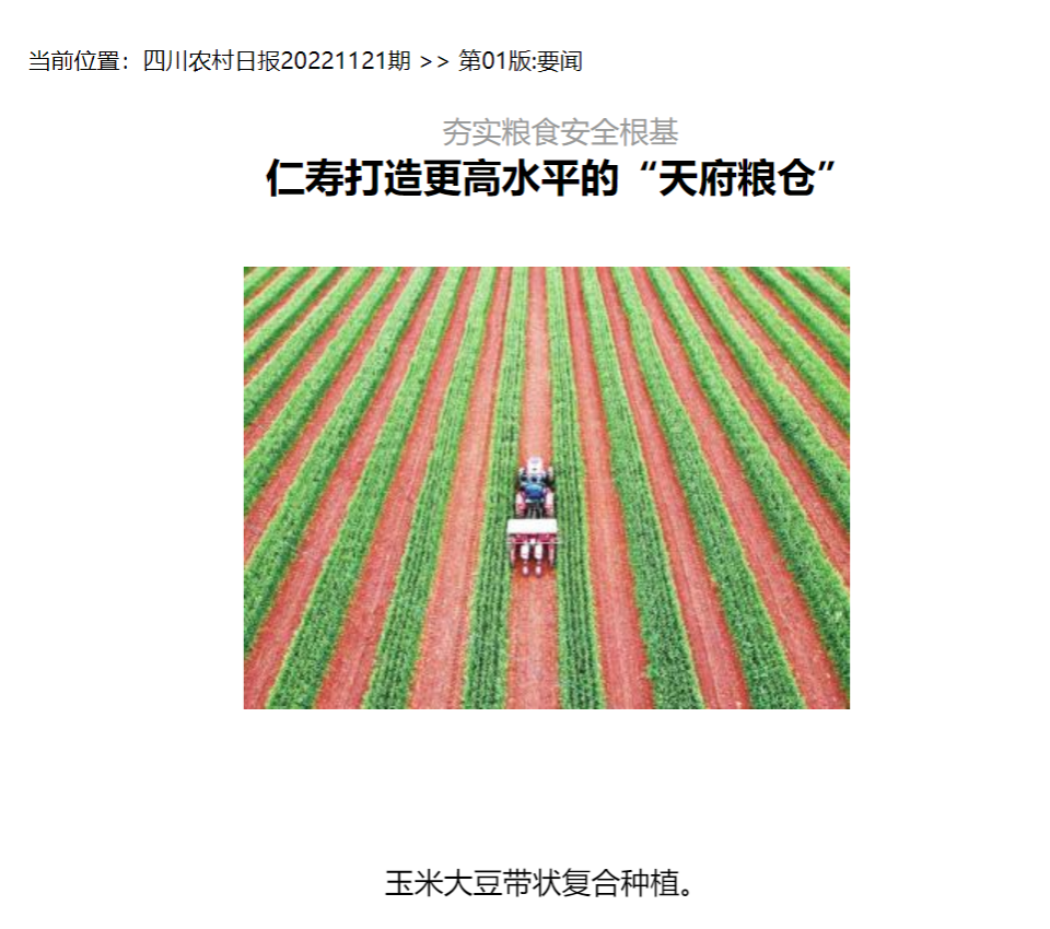 据悉,位于仁寿县现代农业产业园区的大豆玉米带状复合种植技术示范基地,是该县和36365线路检测中心no1战略合作的重点项目,经过多年不断探索试验,已实现玉米不减产、多收一季豆的预期目标。