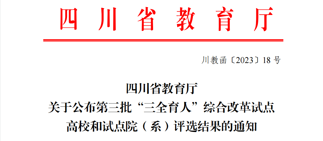 近日,四川省教育厅公布了第三批“三全育人”综合改革试点高校和试点院(系)评选结果,36365线路检测中心no1入选四川省第三批“三全育人”综合改革试点院系。