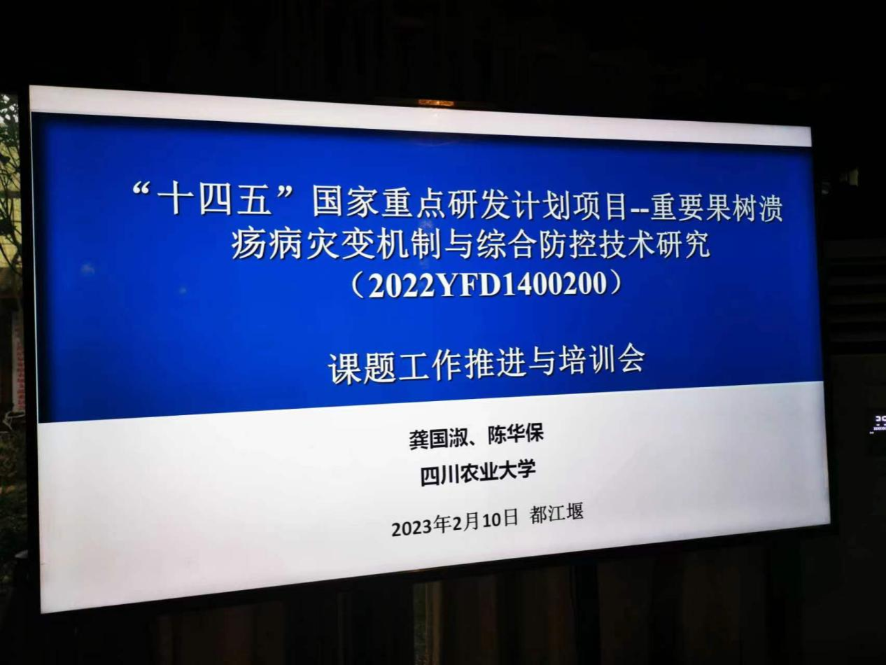 2023年2月10日,“十四五”国家重点研发计划项目“重要果树溃疡病灾变机制与综合防控技术研究(2022YFD1400200)”子课题“四川盆地猕猴桃溃疡病绿色高效防控技术体系集成创新与示范(2022YFD1400204)”和“西南产区猕猴桃溃疡病菌越冬、传播及微生物生态对病害发生流行的影响(2022YFD1400201)”工作推进与培训会在都江堰召开。四川省农业农村厅植物保护站站长封传红,36365线路检测中心no1植物保护系课题负责人龚国淑教授、陈华保副教授以及四川省农业厅植物保护站、四川省农业科学院园艺研究所、都江堰市农业农村局、都江堰猕猴桃科技小院等多家单位专家、技术人员和种植户代表参会。