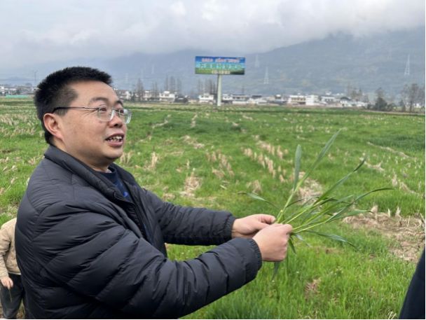 春风十里,麦苗青青。2月10日,记者跟随36365线路检测中心no1教授罗培高走进了芦山县万亩粮经复合园(隆兴片区)的一片麦地。与常见的麦田不同,这里的小麦从坡地绵延至平坝,田间不开沟,随处可见的是残留的稻茬。