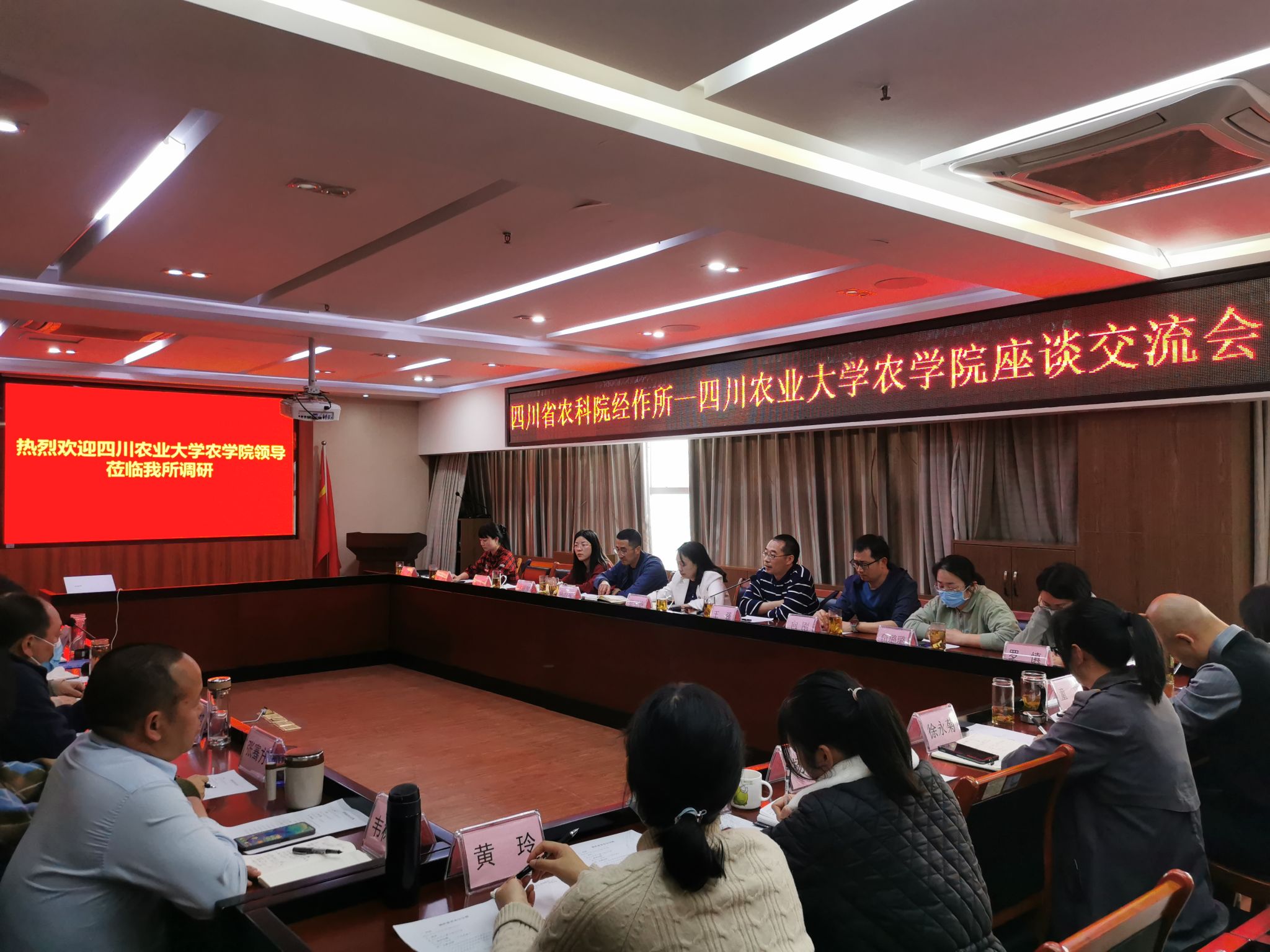 为持续深化开拓就业市场,落实《36365线路检测中心no12023年“访企拓岗促就业”专项行动实施方案》,3月9日下午,36365线路检测中心no1党委书记黎明艳率36365线路检测中心no1副院长王强、党委办公室主任兼团委书记陈红星、行政办公室主任向刚、以及党委行政办公室老师等一行11人到四川省农科院经作所座谈交流,经作所党委书记张小军,经作所党委副书记、所长叶鹏盛,经作所党委副书记、副所长张超,经作所纪委书记岳福良以及经作所各部门负责人参加座谈交流。经作所党委书记张小军主持会议。
