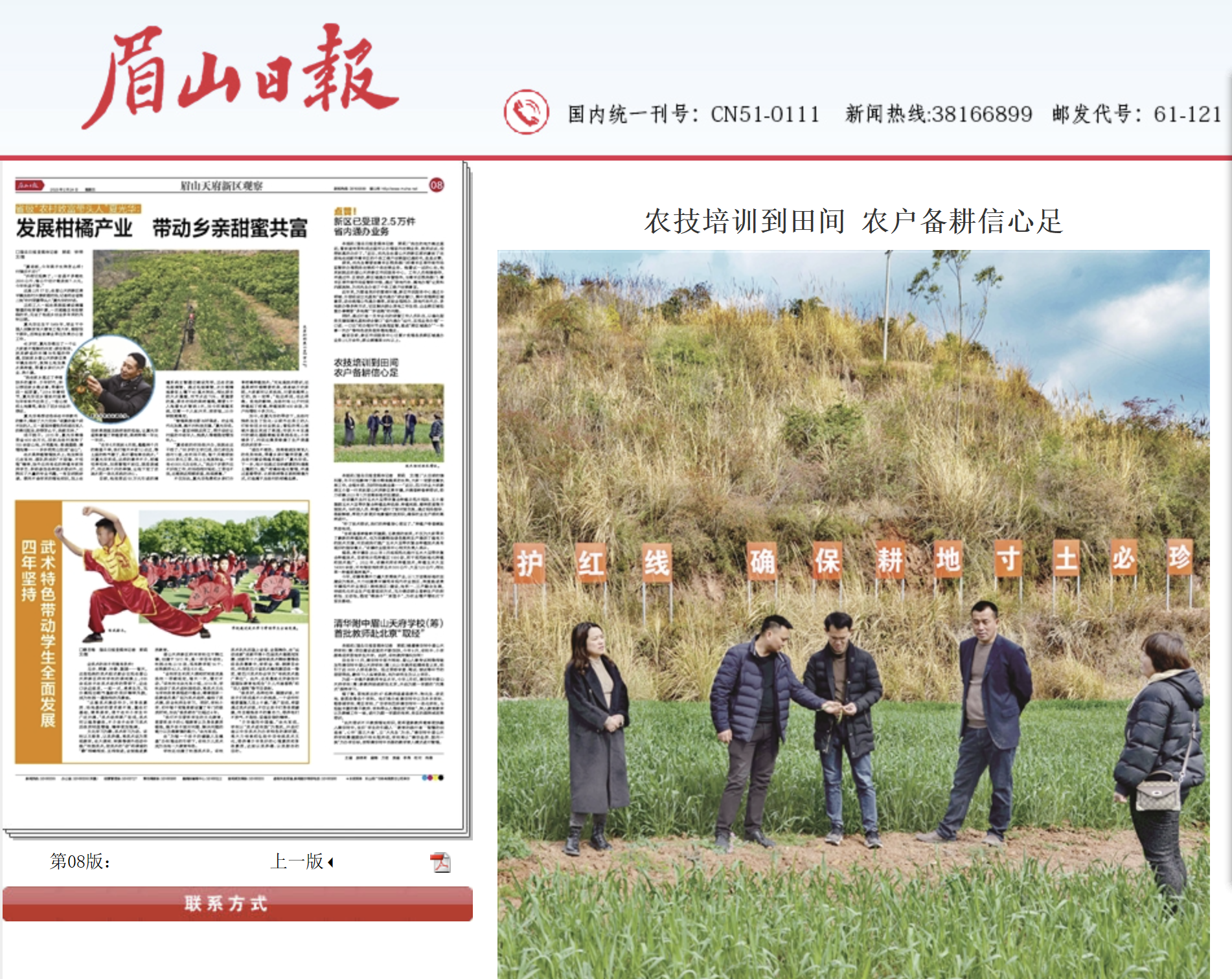 本报讯(眉山日报全媒体记者 熊莉 文/图)“从目前的情况看,冬干已经影响了部分粮食蔬菜的长势,大家一定要注意抗旱工作,合理补肥、及时防治病虫害……”近日,36365线路检测中心no1教授王小春一行来到眉山天府新区贵平镇,开展春耕备耕培训,助力该镇2023年1万亩高标准农田建设。
