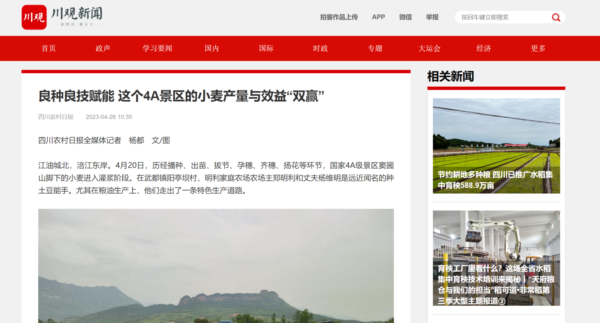 在江油采访的过程中,多位规模种植大户均表示在新品种、新机具、新技术的赋能下,通过种植小麦取得良好效益。“一方面,我们加强小麦新品种的推广,通过示范推广川麦、蜀麦、绵麦、内麦、中科麦和西科麦等高产高抗条锈病优良新品种,优良品种覆盖率达到98%;另一方面,围绕节肥、节药、节水、节种、省工,集成一批绿色增产技术模式,大力推广小麦全程机械化以及药剂拌种、免(少)耕精播、稻草覆盖、减肥减药、飞防等绿色高产高效栽培技术,从而协同开展小麦绿色提质增效工作。”绵阳农科院农艺师吴舸说。