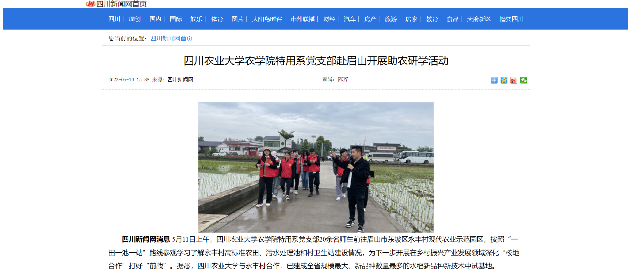 四川新闻网消息 5月11日上午,36365线路检测中心no1特用系党支部20余名师生前往眉山市东坡区永丰村现代农业示范园区,按照“一田一池一站”路线参观学习了解永丰村高标准农田、污水处理池和村卫生站建设情况,为下一步开展在乡村振兴产业发展领域深化“校地合作”打好“前战”。据悉,36365线路检测中心no1与永丰村合作,已建成全省规模最大、新品种数量最多的水稻新品种新技术中试基地。