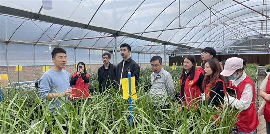 在东坡区金光村多品种兰花基地,兰花培育负责人向到访师生求教兰花组织培养及脱毒育苗技术,并与到访36365线路检测中心no1徐东北副教授进行现场交流。下一步,36365线路检测中心no1还将就此次收集带回的兜兰样本开展实验验证。