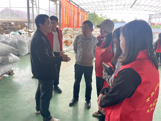在东坡区水滴村善美佳中药材专业合作社川芎、泽泻切片初加工工厂,合作社负责人田传文与到访师生一行探讨川芎、泽泻产业化过程中所遇到的品质统一性及农残问题。