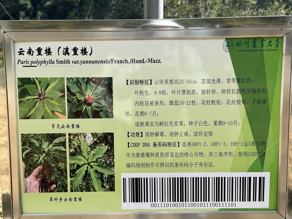 川农大与合作社共建的石棉县重楼资源圃,已搜集了11个品种。川农大通过对重楼种质资源进行田间性状观测,筛选符合药典、适合石棉的优良品系。现在重点关注的一个品种当地叫大白重楼,经学者鉴定为《中国药典》收载的法定种源“云南重楼”,故命名为贡嘎滇重楼。通过建立重楼属植物资源圃,既可以筛选评价优良品系,同时又可以对药农进行科普,让大家学会品种识别,在栽培时把不符合要求的重楼进行剔除,避免混种。