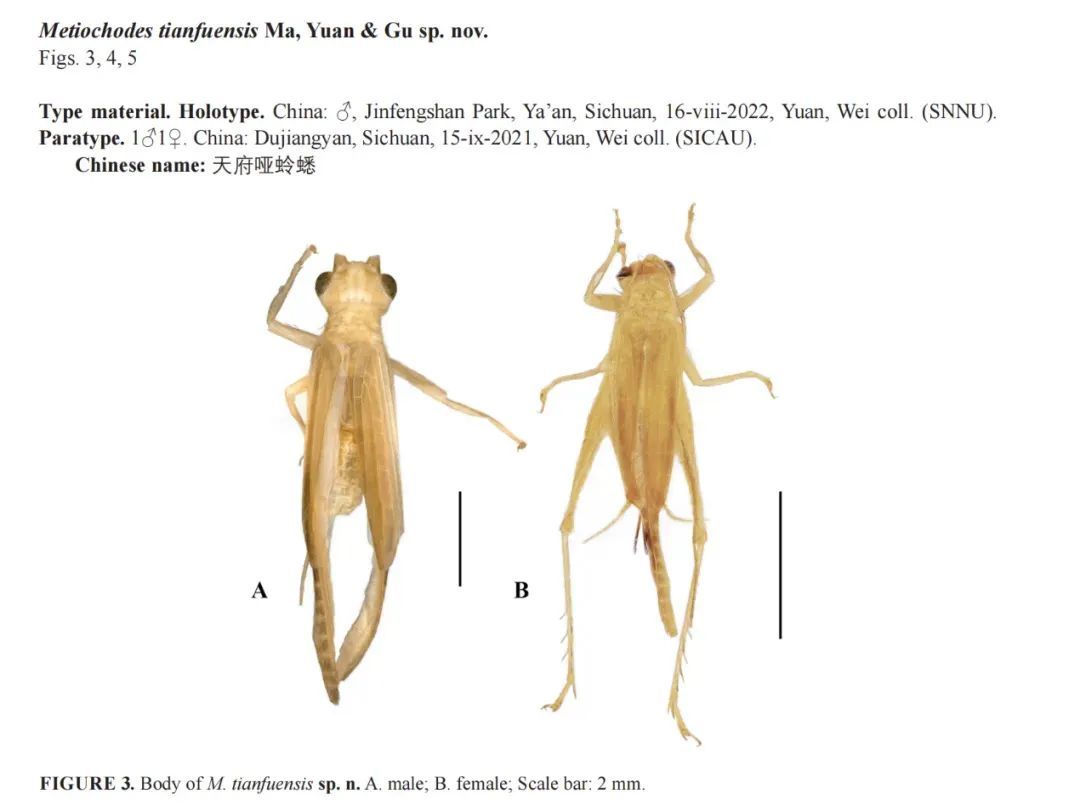 其中一个新种被命名为“天府哑蛉蟋”