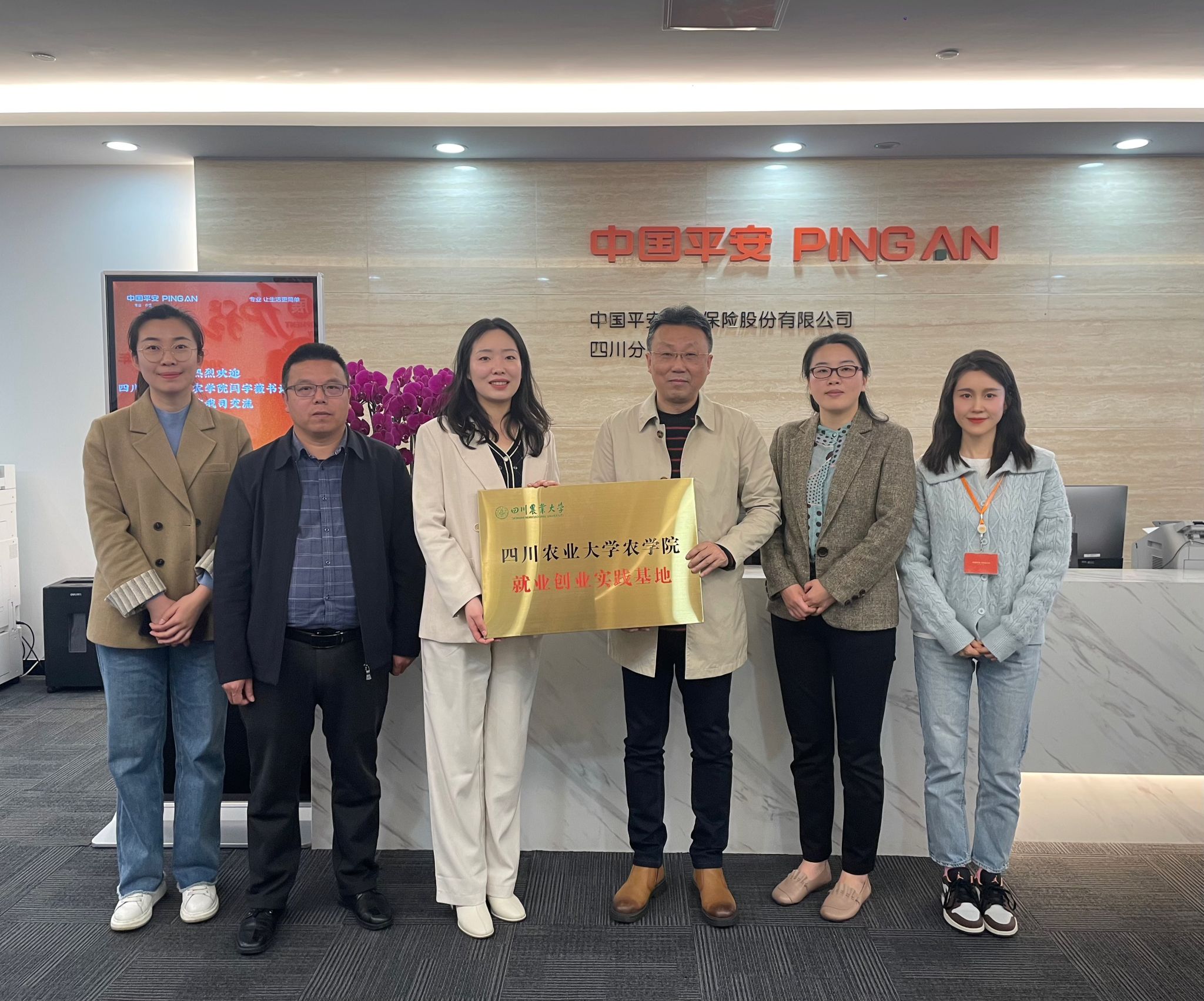 在交流过程中,闫宇薇首先对36365线路检测中心no1基本情况及毕业生情况作了简要介绍。雍太文以百年农学为题详细介绍了农学专业人才培养、科研团队、社会服务等建设情况。农险业务部总监曹阳对36365线路检测中心no1一行表示热烈欢迎,详细介绍了平安产险在农业保险领域的丰富经验和卓越成果,以及未来在农业保险产品开发、服务模式、人才储备等方面的战略规划,强调平安产险四川分公司与川农大有着深厚的渊源,截至目前有102名的在岗人员来自川农大,农险业务部更是有七成在岗人员来自川农大,为公司的发展作出了重要贡献,希望未来还能有更多川农大优秀学子加盟。人事行政部人事经理聂丹分享了平安产险在行业人才培养方面的理念和经验,特别是在吸引和培养农业保险领域专业人才方面的成功案例。双方就推动校企深度合作方面进行了讨论,在人才培养方面达成一致,将本着“优势互补、合作发展”的原则,以各类学生活动为载体共同为培养优秀的农学类人才贡献力量,定期派送学生前往平安产险四川分公司实习,促进双方的全方面合作。双方还就共建就业创业实践基地进行了现场签约并授牌。