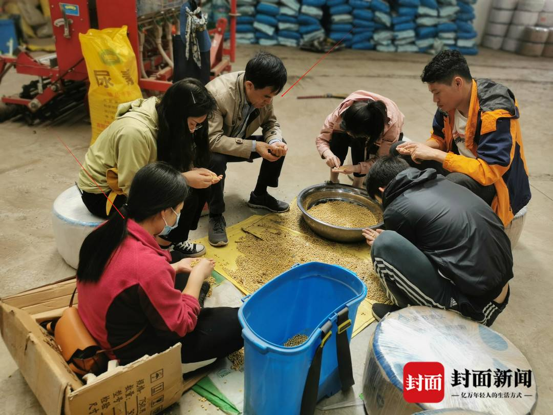 杨教授带领吴雨珊和学生们清选种子,为播种做准备。