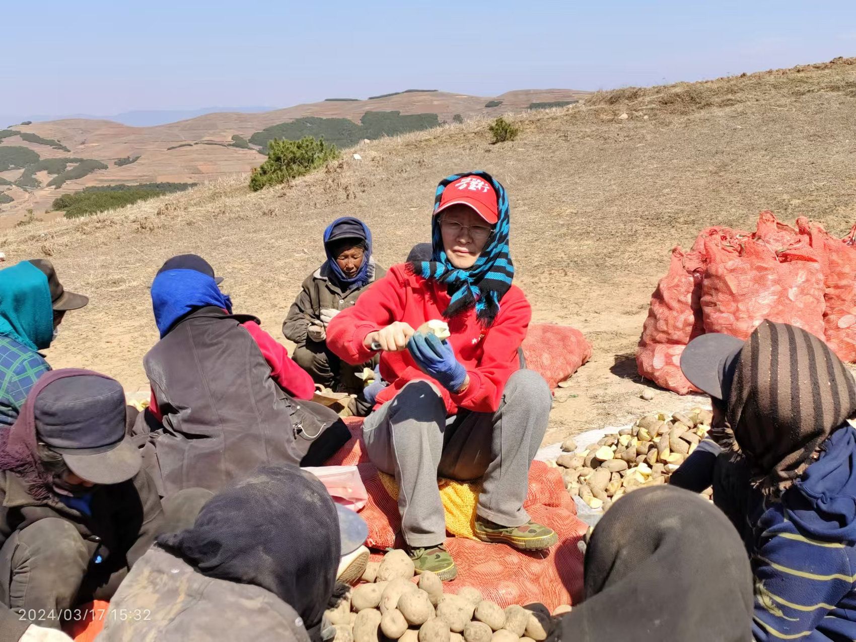 王西瑶在布拖县和彝族农妇一起切土豆播种。图片由受访者提供