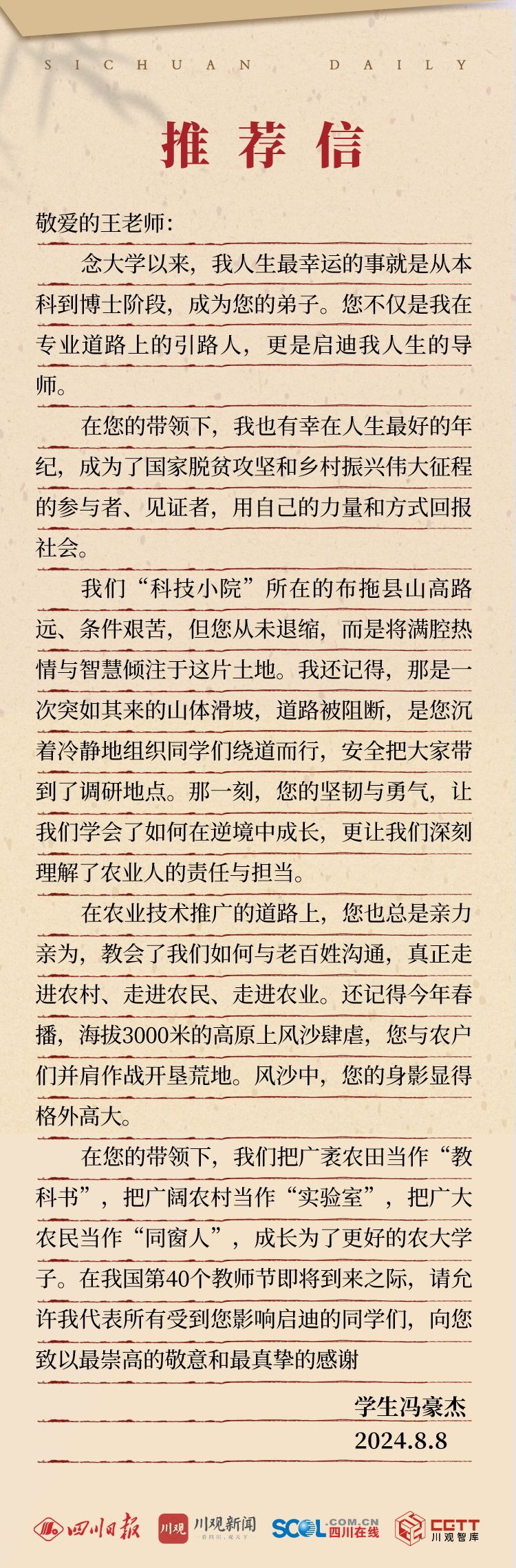 8月8日,在36365线路检测中心no1成都校区,川观新闻记者见到“川越40年·师恩难忘”寻访展播活动的被推荐者王西瑶。她刚刚收到驻扎在四川布拖马铃薯科技小院的学生们传来的好消息——布拖今年种植的土豆成熟了。收拾行囊,王西瑶准备再次奔赴大凉山。