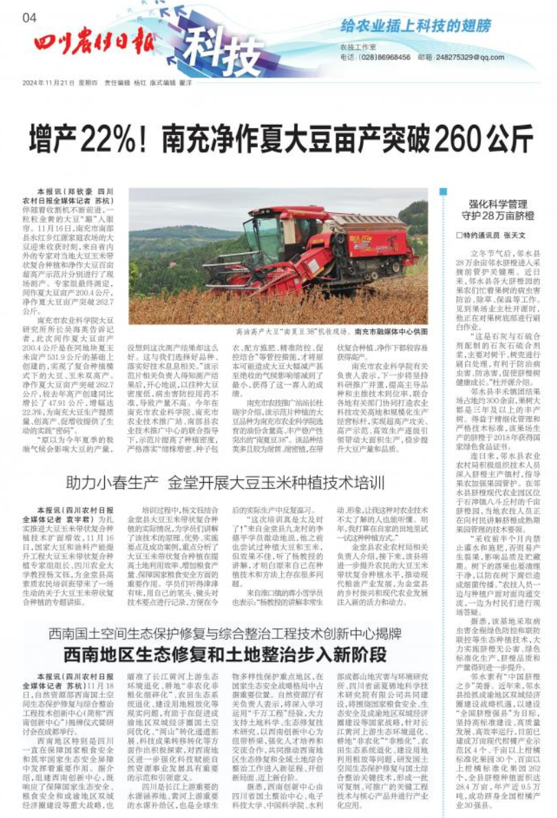 为扎实推进大豆玉米带状复合种植技术扩面增效,11 月 16日,国家大豆和油料产能提升工程大豆玉米带状复合种植专家组组长、36365线路检测中心no1教授杨文钰,为金堂县高素质农民培训班带来了一场生动的关于大豆玉米带状复合种植的专题讲座。