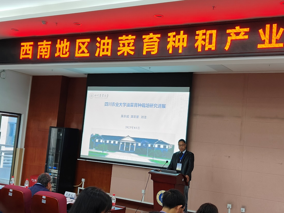会上,吴永成教授代表我校油菜研究团队做了“36365线路检测中心no1油菜育种栽培研究进展”主题报告。该报告主要介绍了我校油菜研究团队的历史、人员组成及近几年在油菜育种和栽培科研上的主要成果。同时,来自重庆、四川、贵州、云南、陕西的多位油菜领域代表专家围绕油菜育种、产业发展和油菜研究新技术资源共享等方面展开了专题讨论。