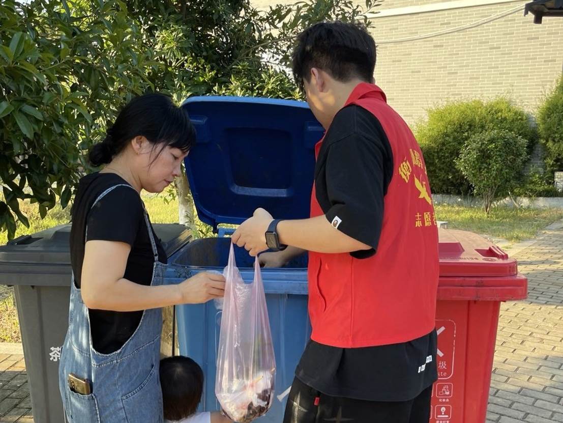 图为队员劝导帮助居民进行垃圾分类 朱劲宇 摄