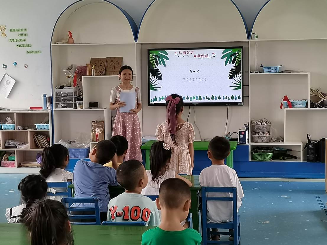 图为队员给小朋友进行环保宣讲 杜思函 摄