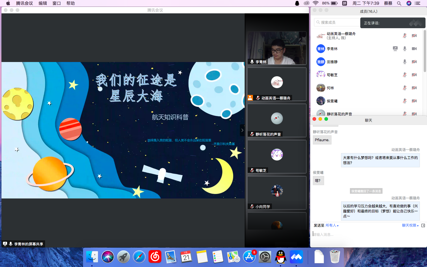 为了更好了解学龄儿童对网络教学的使用情况,在问卷调查期间,团队成员每晚七点至九点半均会使用腾讯会议为巴中市实验小学五年级学生准备三节不同主题的兴趣小课堂。学生们在课堂上表现非常积极,对于腾讯会议的使用也非常熟练。课后,队员们与参与活动的李东杰同学进行交流,李东杰同学说到:“希望哥哥姐姐以后能开展这样的兴趣活动,因为我不仅可以增长知识面,而且可以培养我的学习兴趣。”由此看出,只要合理运用网络授课技术,是能够取得极佳的成果的。
