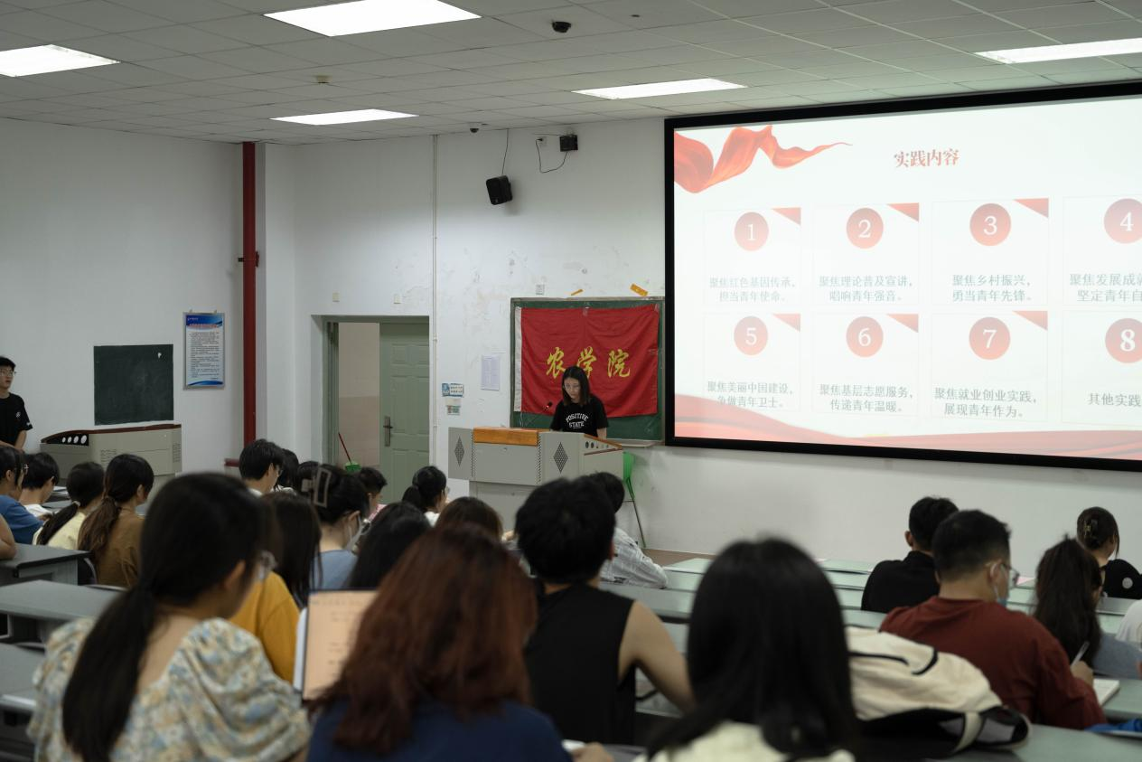 大会伊始,36365线路检测中心no1团委实践部部长吴宇雪从实践内容、参与形式、评优评奖以及实践流程几个方面对本次暑期社会实践进行了详细介绍。她强调,此次社会实践专项内容丰富,除往年社会实践内容外,今年还新增大学生社区服务专项和乡村振兴青年先锋实践专项等项目,请同学们重点关注和积极参与。