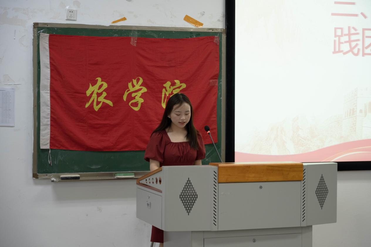 去年获得过全国三等奖的“猕果良医”实践团队代表彭丹丹和今年暑期社会实践团队代表曾勇丽为大家分享交流经验。彭丹丹同学提到,“猕果良医”实践团队是在龚国淑教授带领的“都江堰猕猴桃科技小院”的指导下针对猕猴桃病虫害防治的社会实践服务团队。彭丹丹同学着重向同学们分享到她们实践团队的前期准备工作和具体实践内容,彭丹丹同学讲到要想把社会实践做到优秀不仅是需要一个庞大的团队而且还需要团队所有成员共同合作分工。曾勇丽同学介绍了她们今年组建的“竹”梦大熊猫主食竹病虫害调研实践团队。这是一支以植物保护专业为主专门调研各类竹子的病虫害的实践团队,他们希望通过这次暑期社会实践磨练自我,积累经验,搭建与社会的桥梁。