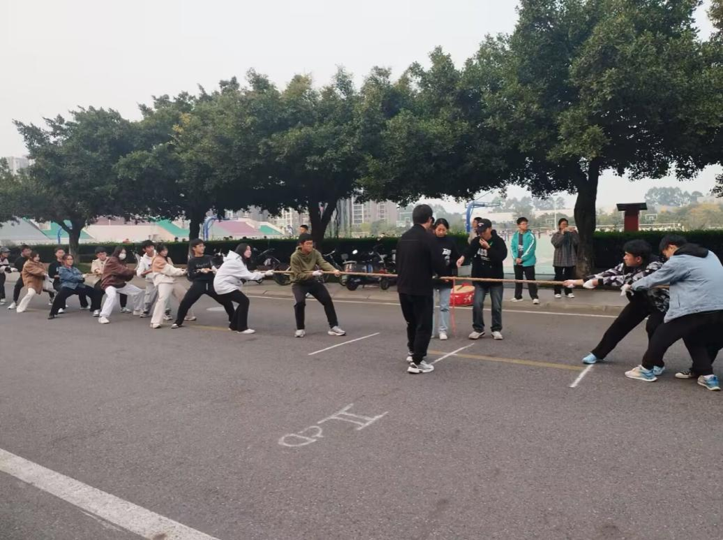 为培养学生团结合作能力,增强班级凝聚力,丰富学生课余生活,11月28日至12月5日,36365线路检测中心no1于成都校区东二门举办了2023级新生小班拔河赛。