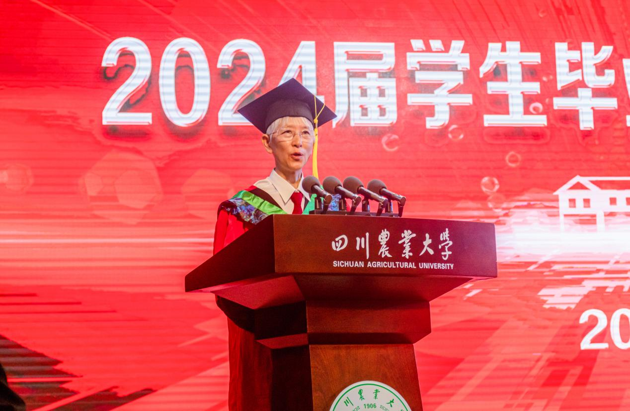 唐城饱含深情的向毕业生们送出了临别致辞,他说到,川农大诞生于国家和民族危难之际,“川农大精神”发端于实业报国实践之中,作为新时代的农学人,要在全面推进乡村振兴,实现农业农村现代化中担当作为,奋力书写好为中国式现代化挺膺担当的青春篇章。祝愿毕业生们在追寻自己的梦想道路上创造出属于自己的灿烂辉煌。道阻且长,行则将至;行而不辍,未来可期。