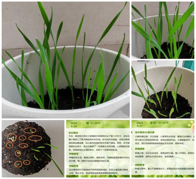 参与活动的同学感悟颇丰。来自植物保护专业的沈祖乐同学称:“躬耕学农事,实践觅真知。通过亲身种植小麦,我深刻体会到农民对庄稼的关注,感受到农业劳动的艰辛与喜悦。”同样来自植物保护专业的刘林雨同学在种植日记中写道:“在短短十天里,我见证了小麦从种子到破土而出,再到旺盛生长的奇妙过程,这让我对生命充满敬畏与热爱。”
