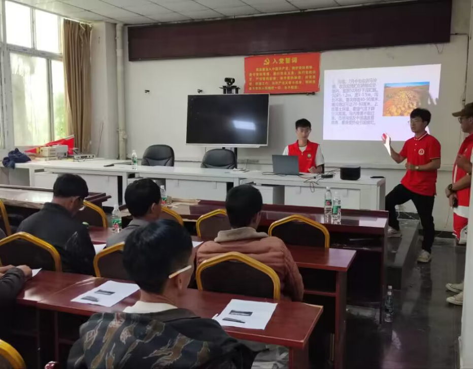 布拖马铃薯科技小院师生在前期调研中发现当地传统的种植技术存在种薯活性不高、栽培贮藏技术粗放等问题。针对这些问题,实践团队在马铃薯的种植技术、病虫害的防治、收获前的准备、贮藏技术四个方面向当地种植马铃薯的50余名村民进行了科普与培训。宣讲团队采用一人对一板块的针对性负责模式,在宣讲前做了充足的准备,通过通俗易懂的话为当地村民科普了马铃薯的相关知识,考虑到宣讲会村民的参与性,团队成员在讲解马铃薯知识的过程中通过提问的方式,积极与村民互动,让村民能够更好的参与到本次的马铃薯知识宣讲中来。
