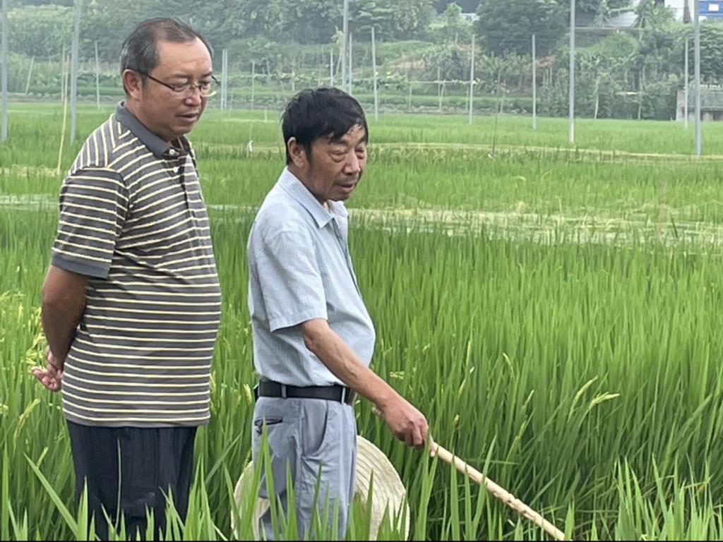 6月22日上午,四川省水稻创新团队岗位专家、36365线路检测中心no1黄富教授来到四川省农科院水稻高粱研究所泸县基地,在四川省水稻创新团队首席专家郑家奎研究员、李耘研究员陪同下对基地展示的水稻新材料、新品种进行了实地考察,并对打好“种业翻身仗”及攻克水稻种业“卡脖子”问题以及水稻育种现状及发展方向、加强技术及材料交流合作进行了深入探讨。